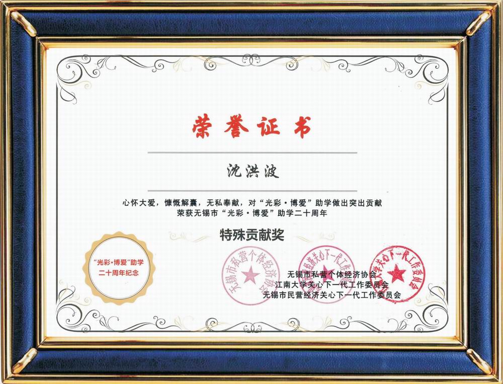光彩博愛助學(xué)二十周年特別貢獻(xiàn)獎(jiǎng)