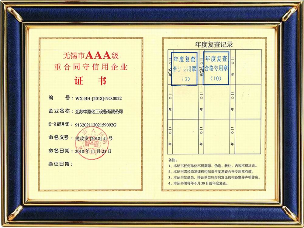 無錫市AAA級(jí)重合同守信用企業(yè)