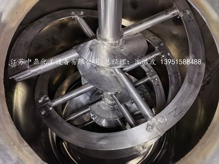 此釜螺帶為:大圈螺帶+大圈螺帶+絞龍式螺片=組合雙螺帶攪拌器