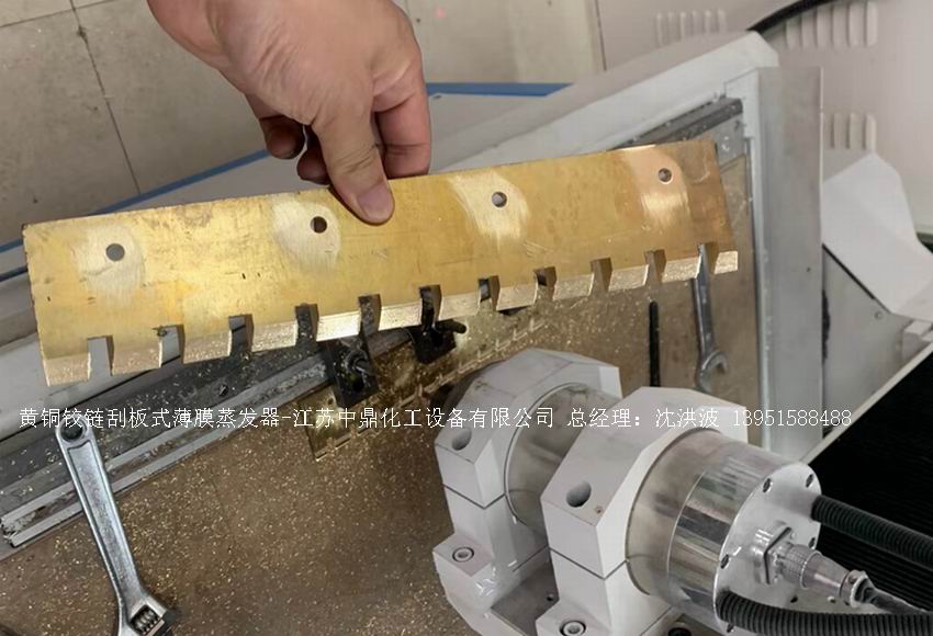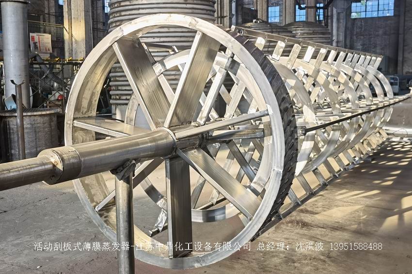 固定刮板:用金屬材料剛性連接在轉(zhuǎn)子上,長度與蒸發(fā)筒身相同,間隙1 - 2mm,加工安裝精度高,適用于特高粘度及易起泡沫物料。