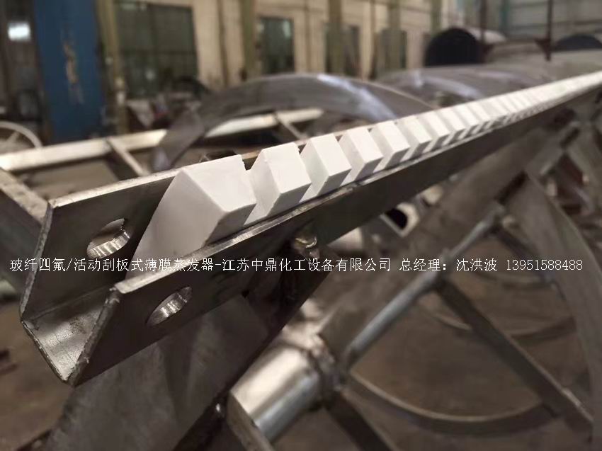 本設(shè)備采用離心式滑動溝槽轉(zhuǎn)子帶動高速旋轉(zhuǎn)的刮板轉(zhuǎn)動(刮板分為:玻纖四氟刮板、碳纖維四氟刮板、石墨四氟刮板、黃銅刮板、合金鋼刮板等)將液體分布成均勻薄膜而進(jìn)行蒸發(fā)或蒸餾的一種高效蒸發(fā)、蒸餾設(shè)備。是目前國外較新結(jié)構(gòu)蒸發(fā)器,在流量很小的情況下也能形成薄膜,在筒體蒸發(fā)段內(nèi)壁表面附著處理液中的淤積物可被活動刮板迅速移去,和固定間隙的刮板蒸發(fā)器相比,蒸發(fā)量可提高40-69%,它具有下列性能與特點(diǎn):