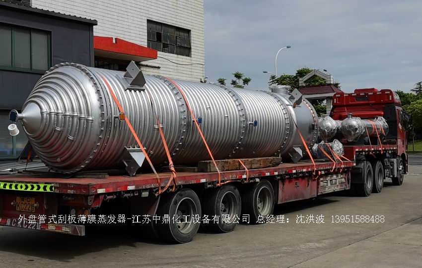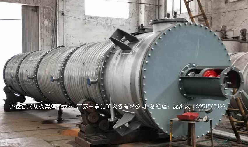 江蘇中鼎化工設(shè)備有限公司--離心式刮板薄膜蒸發(fā)器主要由加熱外盤(pán)半管式夾套(半管夾套內(nèi)走蒸汽,導(dǎo)熱油,熔鹽或者熱水等循環(huán)給蒸發(fā)器外壁加溫,通過(guò)熱傳導(dǎo),把蒸發(fā)器內(nèi)壁形成的物料薄膜中的水份蒸發(fā)減少,提高物料的濃度百分比。一般設(shè)計(jì)壓力為0.3mpa~2.5mpa左右,如果是蒸汽溫度一般在180°以下,導(dǎo)熱油溫度一般在280°以下,熔鹽溫度一般在380°以下。